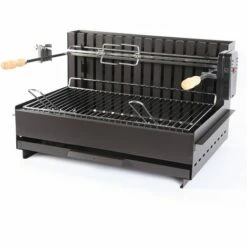 - Foyer vertical avec un tournebroche, un moteur Ă piles force 12 kg et une broche Ă lardoires.