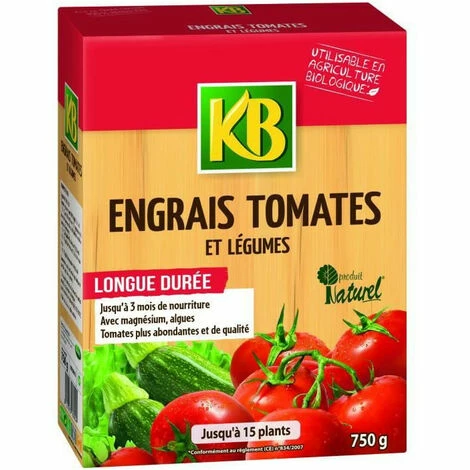 KB Engrais Tomates et légumes UAB 750g, Engrais idéal pour toutes les variétés de tomates cultivées en pleine terre ou en jardinieres, Apporte jusqu’a 3 mois de nourriture tres complete grâce a sa composition organique enrichie en magnesium et algues marines, Pour des tomates plus abondantes et de qualité, Limite les risques de lessivage et nourrit de façon progressive, Utilisable en agriculture biologique*,