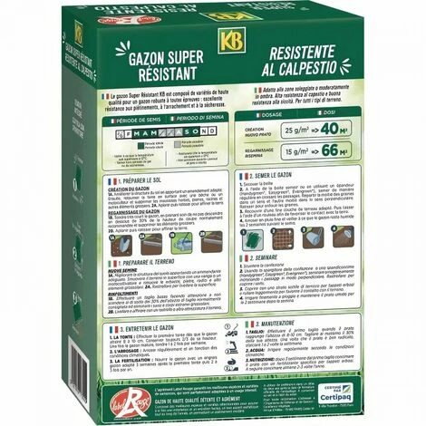 Un gazon résistant a un usage intensif et aux conditions extremes. Ce mélange de variétés unique permet une tres bonne résistance aux piétinements, a la sécheresse et cela toute l’année ! L’agrément Label Rouge répond a plusieurs exigences qualité, garanti des variétés de haute qualité et une satisfaction client.
