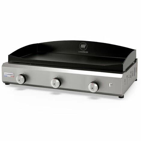 Plaque fonte émaillée 75*403 brûleurs inox (7.2 kW)Pour 10 à 14 couvertsCARACTÉRISTIQUESPlaque fonte émaillée inclinable (avec trou)Brûleurs inox droits double paroi à haut rendementSécurité thermocoupleAllumage piezzo électroniqueBoutons ergonomiques et antidérapants4 pieds réglables en hauteurRécupérateur inox carré 9*9 cm inclusFonctionne au gaz butane ou propaneChâssis en version inox mat+Norme CECertification Origine France GarantieDimensions L77 P55 H25 cmPoids 30 kgLES +Confort : allumage piezzo électronique, sécurité thermocouple, et pieds réglables facilement.Haute performance de cuisson : grâce aux brûleurs droits double paroi à haut rendement (idéals pour la saisie des pièces de viande).Durabilité et finition : châssis en inox mat+ (procédé unique signé Maison LE MARQUIER) qui supporte la corrosion, les intempéries, l’air marin et s’entretient facilement.Grande surface de cuisson : idéale pour les grandes tablées et pour cadencer les cuissons de différents aliments.Protection : couvercle entièrement recouvrant en option.