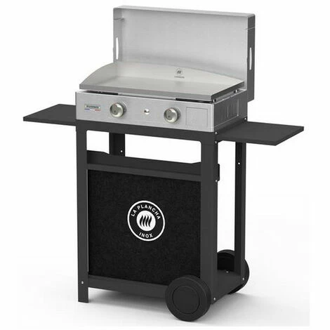 Le PCTI260IC de la marque Le Marquier est un ensemble plancha gaz 2 feux + chariot noir + couvercle inox.